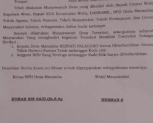 LUTIM, SUARATERKININEWS.COM- Tersandung kasus berduaan dengan janda dengan oknum anggota BPD, Kepala Desa Maramba Kecamatan Wotu Kabupaten Luwu Timur Sulawesi Selatan didesak berhenti dari jabatan