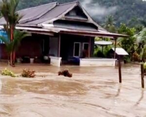 LUWU TIMUR, SUARATERKININEWS.COM- Diguyur hujan deras selama 2 hari sehingga air sungai meluap mengakibatkan banjir di pemukiman warga serta membanjiri area kebun dan persawahan, Rabu 2