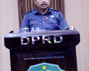 LUWU TIMUR, SUARATERKININEWS.COM- Juru bicara Fraksi Nasdem, Aprianto, S.Kep, saat membacakan pandangan umum dalam Rapat Paripurna DPRD Kabupaten Luwu Timur, Rabu 16 Juli 2025. Fraksi