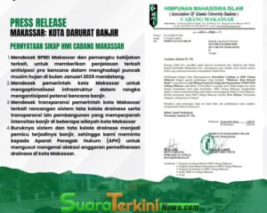 Makassar – Himpunan Mahasiswa Islam (HMI) Majelis Penyelamat Organisasi (MPO) Cabang Makassar merilis pernyataan sikap “Makassar: Kota Darurat Banjir” pada Minggu (28/12/24). Pernyataan sikap tersebut