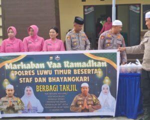 LUWU TIMUR, SUARATERKININEWS.COM- Sat Intelkam Polres Luwu Timur menggelar kegiatan sosial dengan membagikan takjil gratis kepada pengendara dan masyarakat yang melintas di depan Pos Lantas,