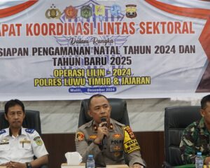 LUWU TIMUR, SUARATERKININEWS.COM- Dalam rangka menyambut perayaan Natal 2024 dan Tahun Baru 2025, Polres Luwu Timur menggelar rapat koordinasi kesiapan pengamanan melalui operasi dengan sandi