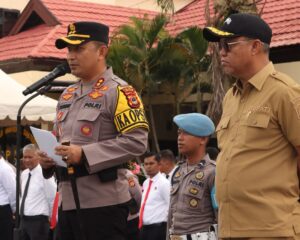 LUWU TIMUR, SUARATERKININEWS.COM- Polres Luwu Timur menggelar pasukan untuk menandai dimulainya Operasi Lilin 2024 dalam rangka pengamanan perayaan Nataru (Natal 2024 dan Tahun Baru 2025).