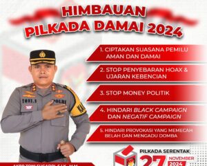 MAJENE, SUARATERKININEWS.COM- Menjelang Pilkada Serentak 2024, Kapolres Majene, AKBP Toni Sugadri, S.I.K., mengeluarkan himbauan penting yang ditujukan kepada seluruh masyarakat Kabupaten Majene. Himbauan tersebut disampaikan