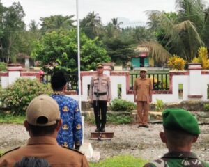 LUWU TIMUR, SUARATERKININEWS.COM- Kapolsek Tomoni Timur IPDA Jefir Alang Ramba, S. Sos, memimpin upacara Hari Kesadaran Nasional (HKN) tingkat kecamatan, di halaman rumah jabatan Camat