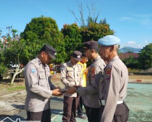LUTIM, SUARATERKININEWS.COM- Kapolsek Wasuponda IPTU Ahmar Wijaya,S.Sos didampingi Kanit Provos Polsek Wasuponda AIPTU Gaffar, melakukan inspeksi pengecekan handphone terhadap personelnya terkait dugaan keterlibatan dalam aplikasi