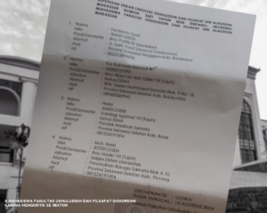 MAKASSAR, SUARATERKININEWS.COM – 4 mahasiswa Fakultas Ushuluddin dan Filsafat (FUF) UIN Alauddin Makassar terkena sanksi berupa Skorsing. Sanksi itu, dituangkan pada Surat Keputusan Dekan FUF