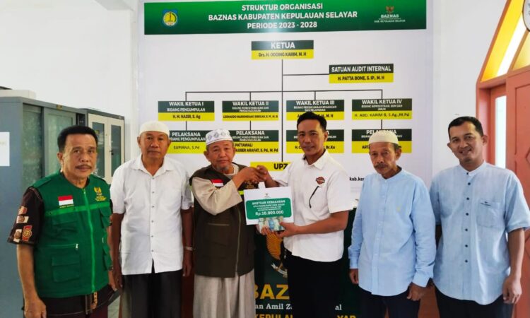 Penyerahan bantuan dilaksanakan pada hari, Jum’at, (24/5/2024) bertempat, di Kantor Badan Amil Zakat Nasional (Baznas) di ruas Jln. R. A. Kartini. Benteng. Kegiatan tersebut dihadiri Wakil Ketua Bidang Perencanaan, Keuangan dan Pelaporan Badan Amil Zakat Nasional (Baznas) Kabupaten Selayar, Andi Baso, SH, Wakil Ketua bidang pendistribusian dan pendayagunaan, Leonardo Marsondang Siregar, Wakil Ketua bidang pengumpulan, H. Muh. Nasir, S. Ag, serta bagian pengumpulan, H. Abd. Karim.